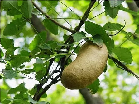第一次遇见八月炸,是去年秋,行走在峡谷幽静清凉处,穿越峡谷时在一条小径上偶遇。不经意间抬头,看见路边一棵小树的树顶悬挂着几个沉甸甸的果实。“怎么会有芒果?”见我抬头张望,同事亦抬头,“呀,八月炸!”一声惊呼后,伸开手臂,拉了紧紧缠绕的藤蔓枝条,那果实便乖乖俯下身来,立于手中。同事把最大的一个八月炸递给我,又迫不及待剥开一个裂口的八月炸送入口中,津津有味地吃起来,那姿态,仿佛在吃什么山珍海味,他细细品尝,吃完还咂咂嘴。第一次遇见,也是第一次听说这样的果实,好奇心满满,我学同事样,小心剥开八月炸外壳,露出一截乳白果瓤,洁白,半透明,乳膏状果瓤上密布着的黑籽隐约可见。送入口中,绵软香甜,还未咀嚼,轻轻一抿嘴,乳白果肉即刻化做满口蜜汁,是那种特别纯正的甜,一直渗到心里去,几口便吃完。有点像《西游记》中猪八戒吃人参果的囧样,囫囵吞枣,本想仔细品尝,后悔吃得太快。