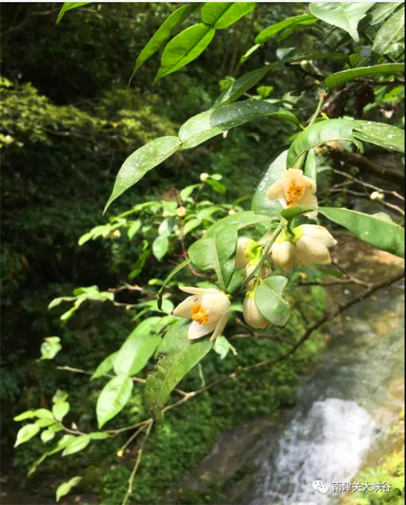 后来,景区开始修建栈道。蜿蜒的栈道,绵延起伏,盘旋在峡谷崖壁的一侧,仿若一条长龙攀附在半山腰。栈道与我近在咫尺,伸手可触,可我却无法近前。春天,我开出小朵白花,细细碎碎藏在绿叶中,花朵淡雅,没有迎来蜜蜂,却时而有蝴蝶围着我翩翩起舞,伴着溪水的哗哗声,仿若大自然奏响一曲美妙的音乐。峡谷无人迹时,崖壁两侧山顶,偶尔还有顽皮的野猴嬉闹,你追我赶,惹得我仰头张望,但瞬间,这些野猴不见踪影,唯留下树枝摇晃的厉害。