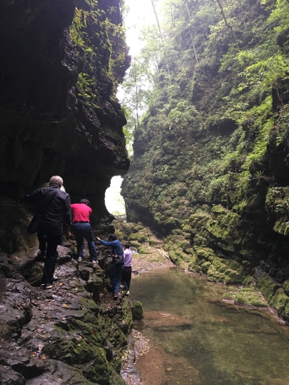 检查组一行历时三个半小时冒雨穿越6.8公里的南津关大峡谷,沿途就峡谷动植物繁衍和赋存情况进行了解,对动植物保护、珍稀动植物识别、景区运营过程中的动植物科普进行指导,现场识别出叉叶兰、红豆杉、八角莲等未被识别甚至是被忽略的珍稀植物。