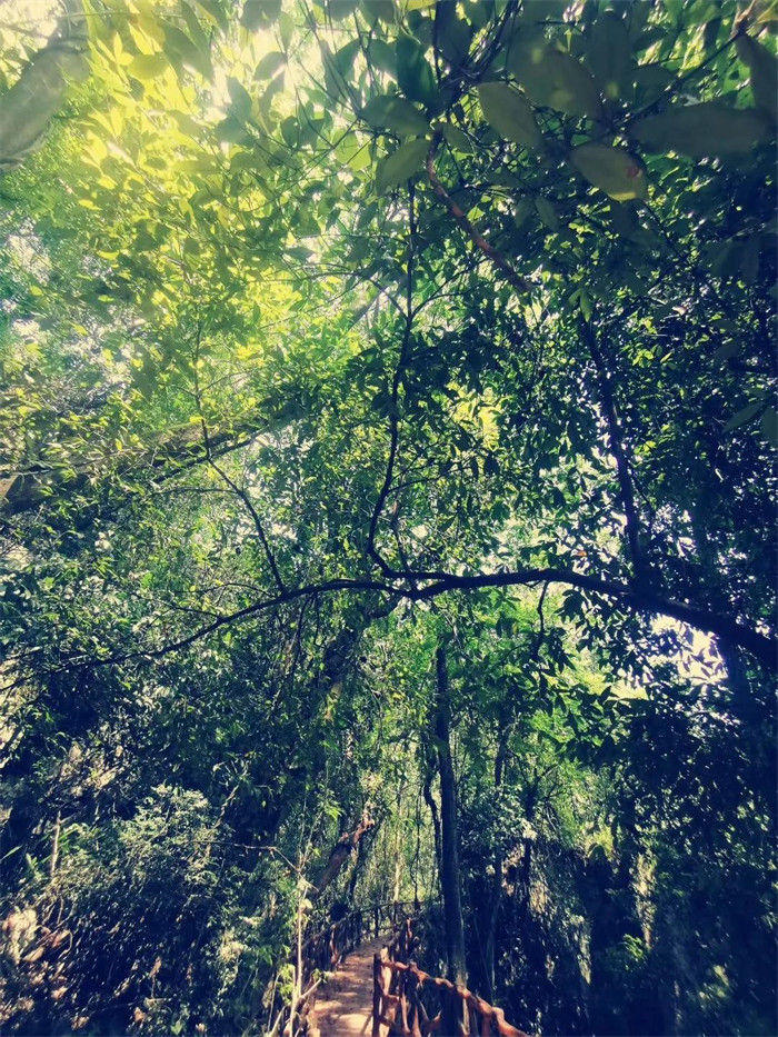 长潭里一群群小鱼儿成群结队,螃蟹在小溪间横行霸道。游于栈道,仿佛置身于世外桃源,行走至此,氤氲馥郁,雾朦雨疏,如童话仙境。