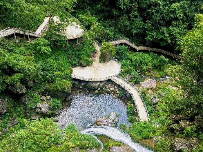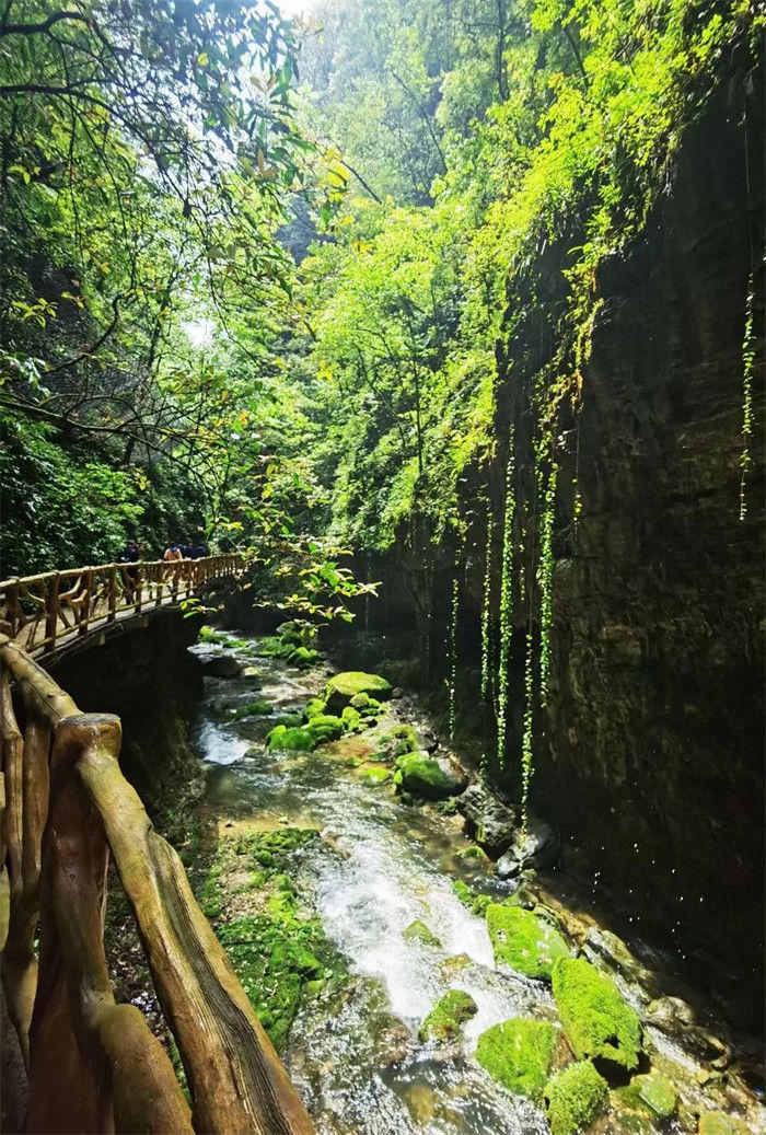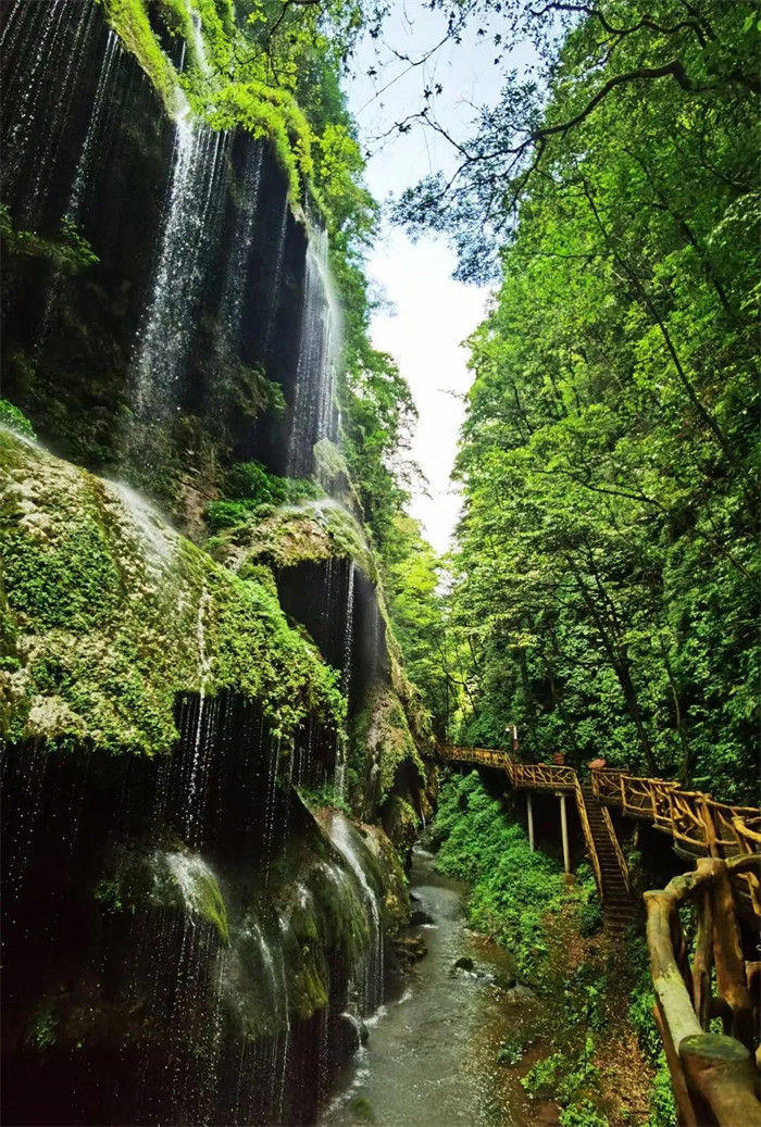 峡谷内瀑群密布,极高的负氧离子促进人体新陈代谢,清洗五脏六腑,洗去因久居闹市而沉积在体内的尘埃,消除疲惫的身心。