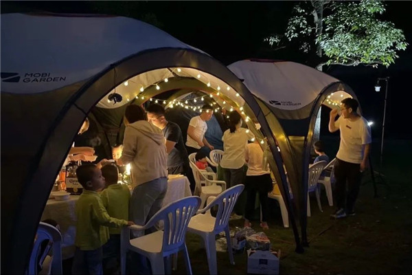 灯光、音乐、投影……还有身边的你,夜间场会派对模式开启。放飞自我,尽情嗨皮,微醺了,就索性租个帐篷住下吧!