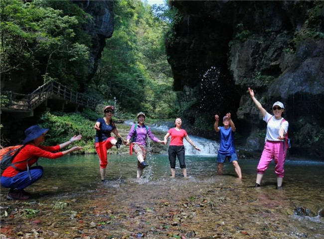 在峰回多姿、溪水流长的南津关大峡谷赏山水秘境、峡江风光。