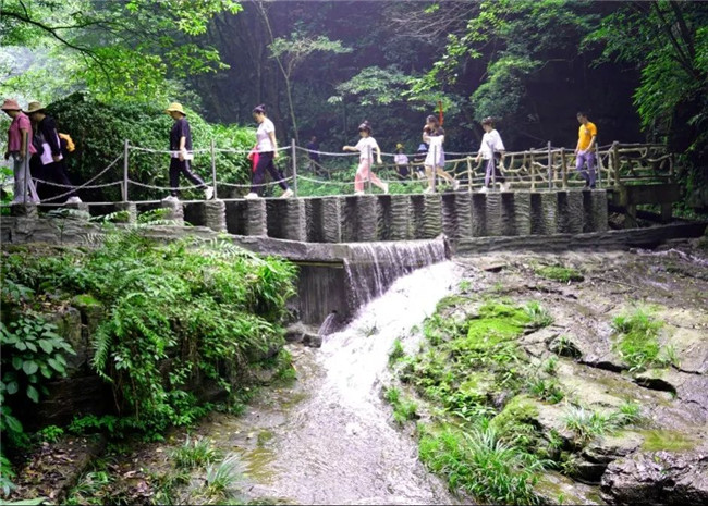在峰峦攒峙,重山如阙的南津关大峡谷游森林氧吧、峡谷风貌。