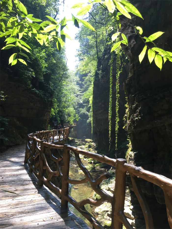 走在峡谷小道上一阵秋风拂过