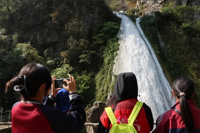 沿着蜿蜒的小径前行,眼前的景色不断变换。时而狭窄幽深,让人感受到一种神秘的氛围;时而开阔明朗,豁然开朗的视野令人心旷神怡。每一处景观都独具特色,让人不禁感叹大自然的巧夺天工。在这里,同学们不仅仅是游客,更是探索者,用心去感受大自然的奇妙之处,用眼睛去捕捉每一个精彩瞬间。
