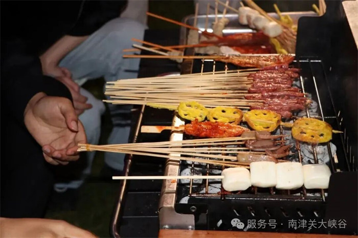露营怎么能少了烧烤呢?营地为您准备了齐全的烧烤设备,您可以和孩子一起动手,将新鲜的食材串成美味的串串,在炭火上烤得滋滋冒油。在这个过程中,孩子们学会了动手操作,家长们则享受着陪伴的快乐。