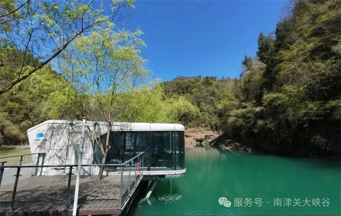 在南津关大峡谷,还有一处充满未来感的住宿选择 —— 太空舱民宿,为您的双节之旅增添别样的浪漫与新奇。这些太空舱宛如来自外太空的精灵,静静坐落于峡谷之中,与周边的青山绿水相得益彰,形成一道独特的风景线。