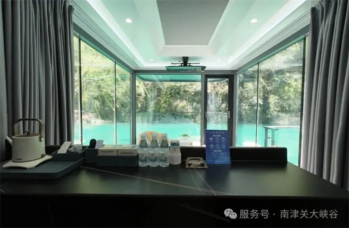 清晨,阳光透过 270 度全景落地窗倾洒而入,将您从睡梦中轻轻唤醒,睁眼便是峡谷的绝美景色,让人心旷神怡。夜晚,打开天窗,浩瀚星空触手可及,仿佛整个宇宙都在为您闪耀。在这里,您不仅能享受高品质的住宿体验,更能与大自然亲密接触,聆听风声、水声、鸟鸣声交织成的美妙乐章。